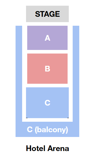 Het concert begint om 17:00 uur, met tickets beschikbaar in verschillende zitzones.